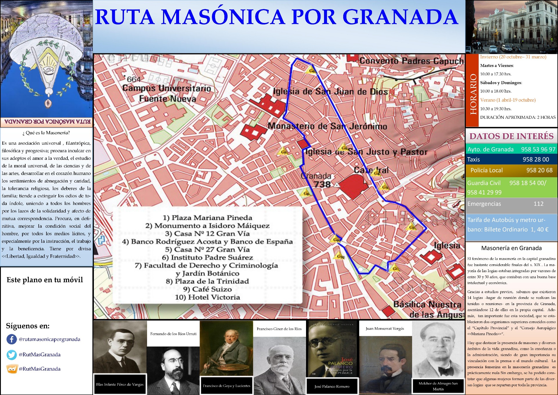 Andalucía llegó a poseer más logias masónicas que Madrid y Barcelona, incluso a integrantes pertenecientes a la élite intelectual de cada momento. Esto, inevitablemente, tenía que verse reflejado en el espacio urbano de una capital provincial como es Granada. A continuación, os presentamos algunos de los lugares más singulares de esta ciudad relacionados con la Masonería...